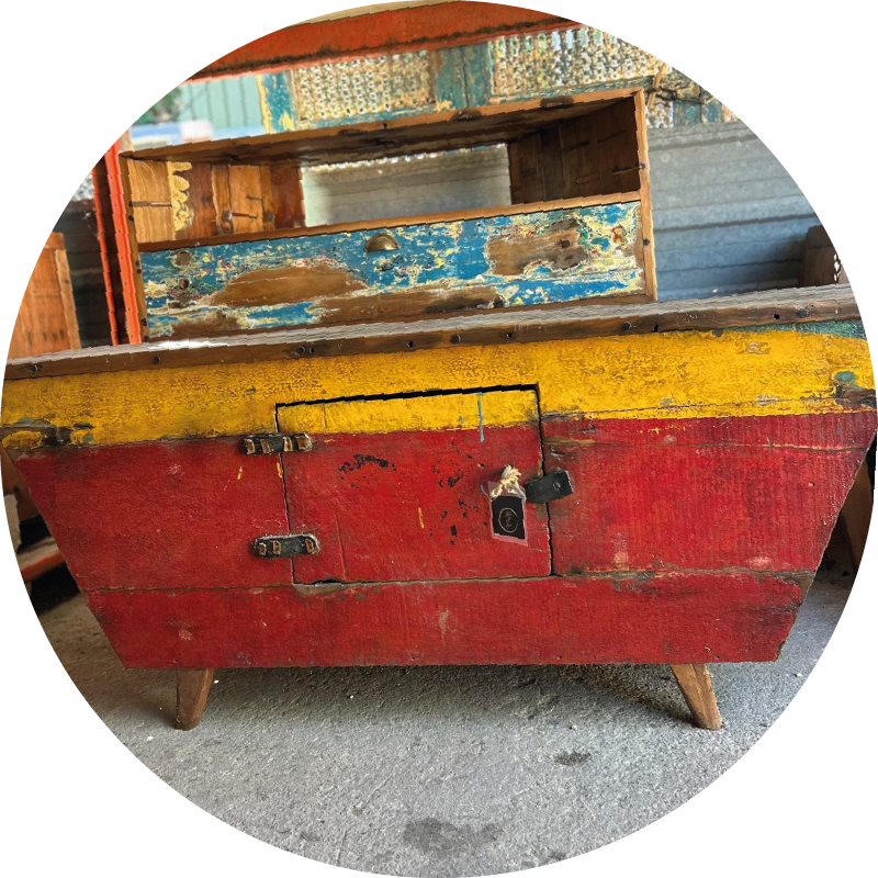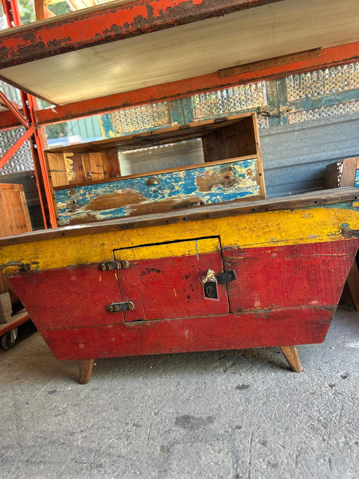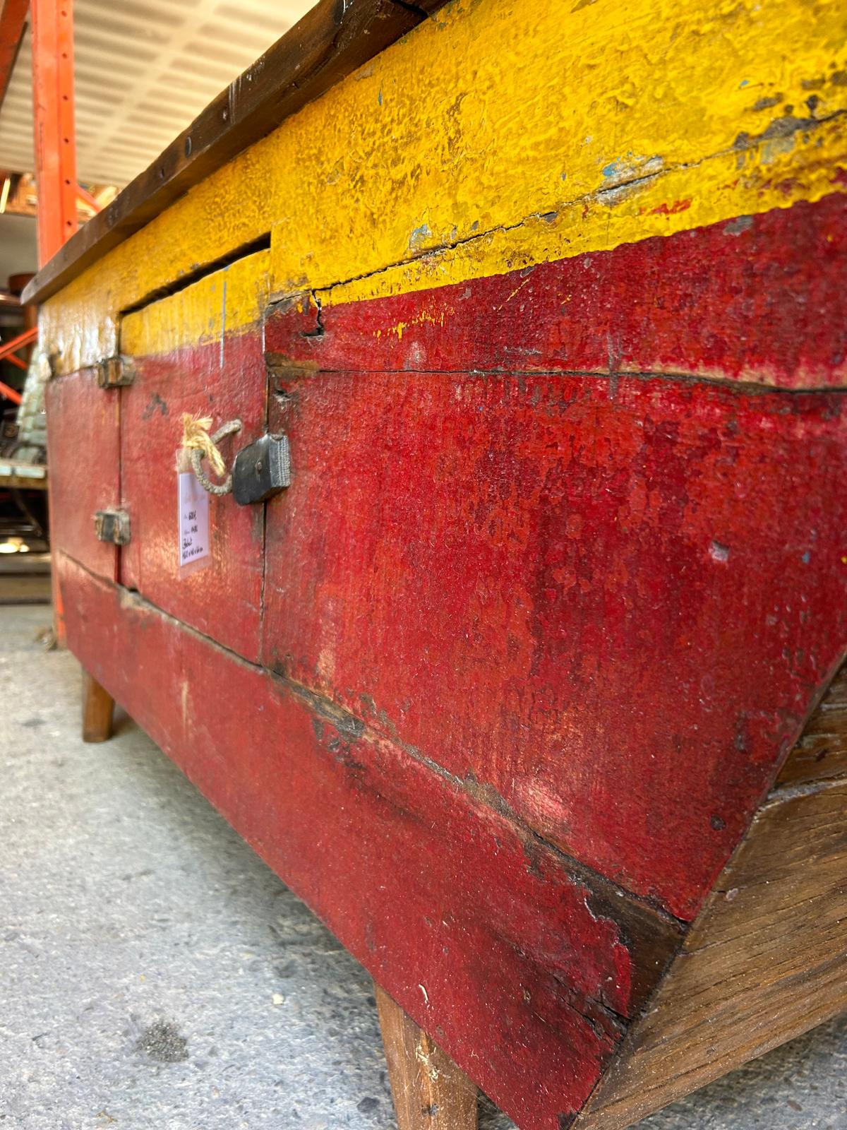 Bahut indonésien en bois de bateau bicolore (jaune et rouge)