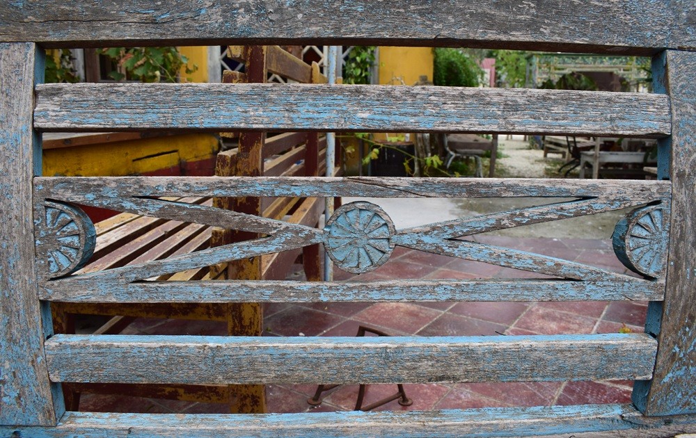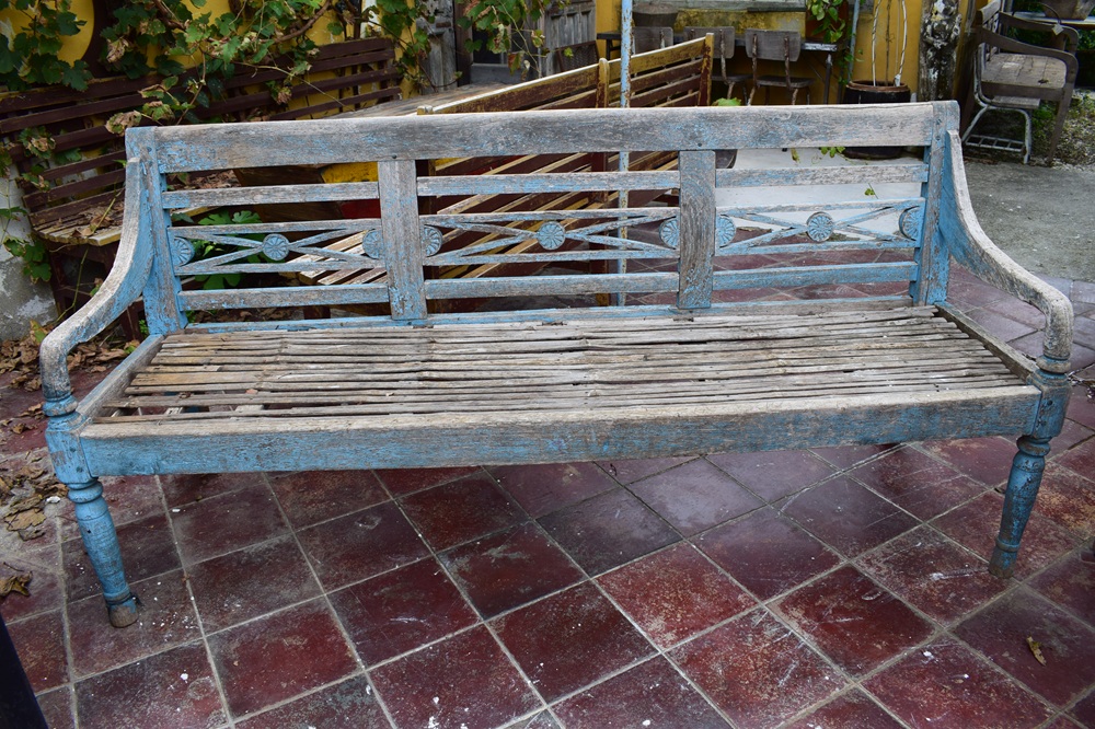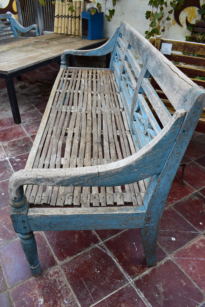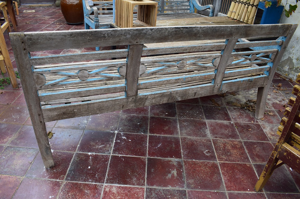 Banc en teck et assise en bambou, ancien, Indonésie.