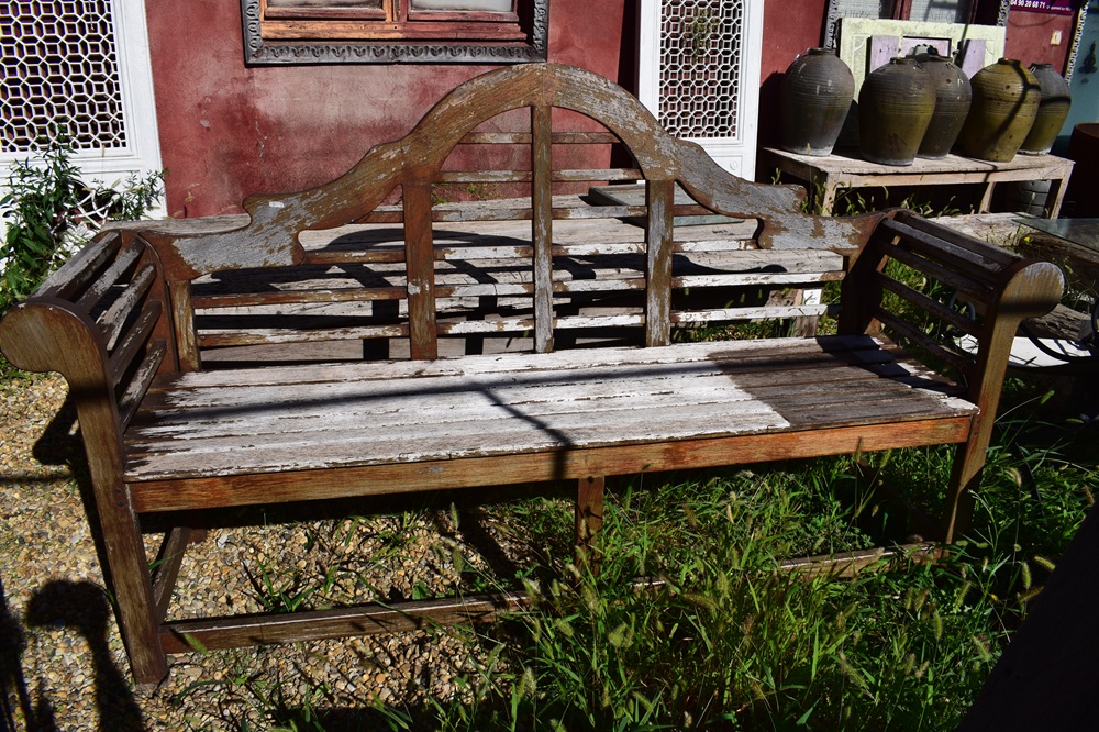 Banquette indonésienne en teck, ancienne.