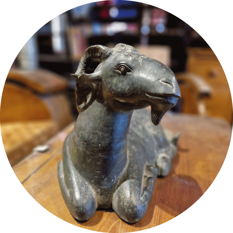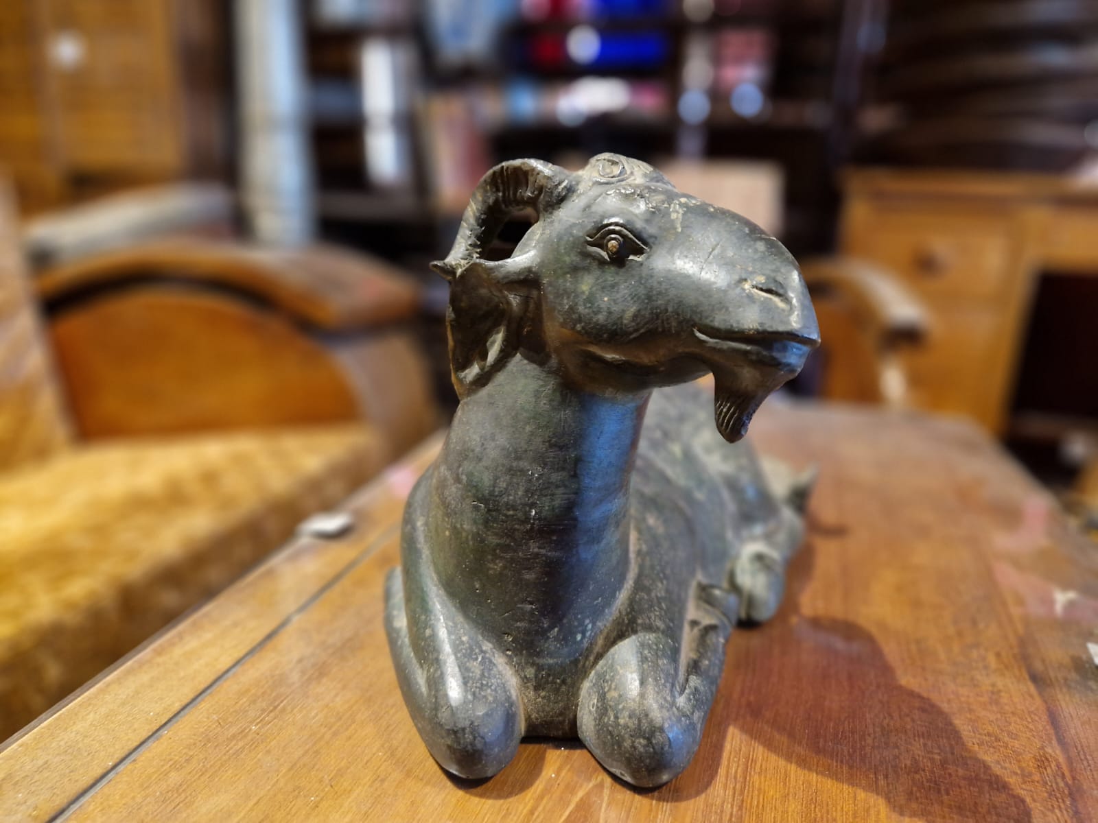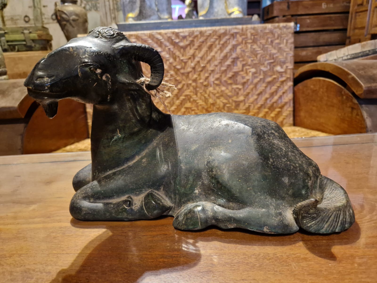 Bélier en bronze de 1920 Coloniale hollandais. Provenance Indonésie.