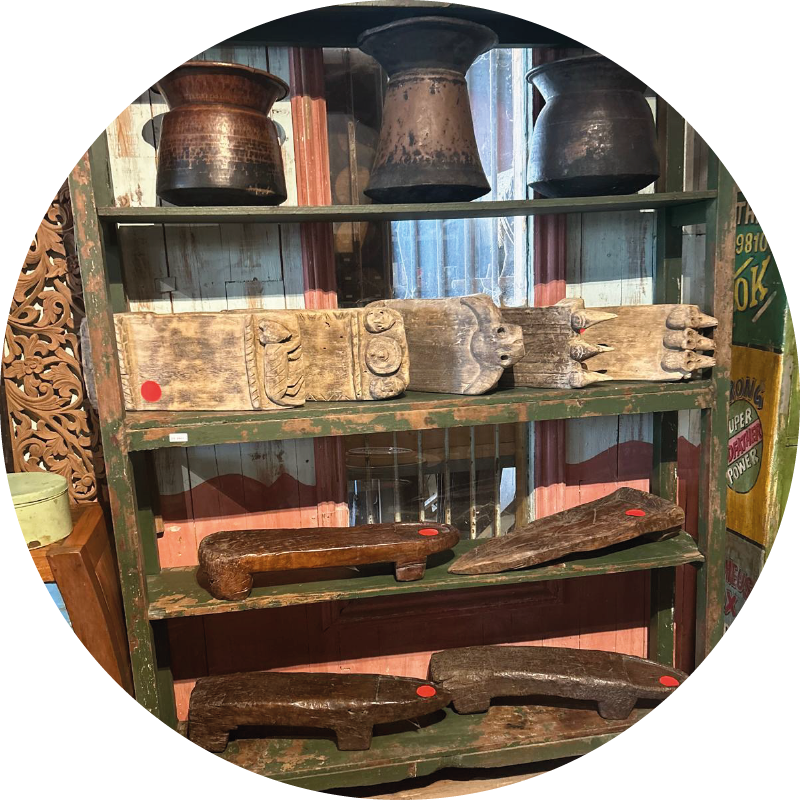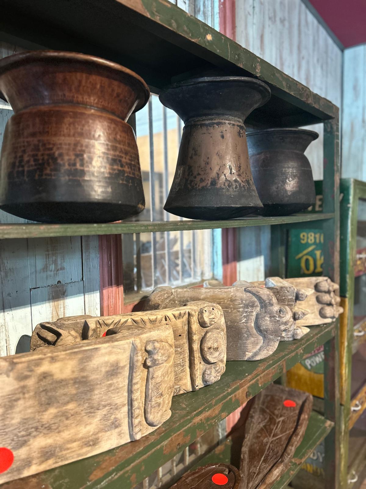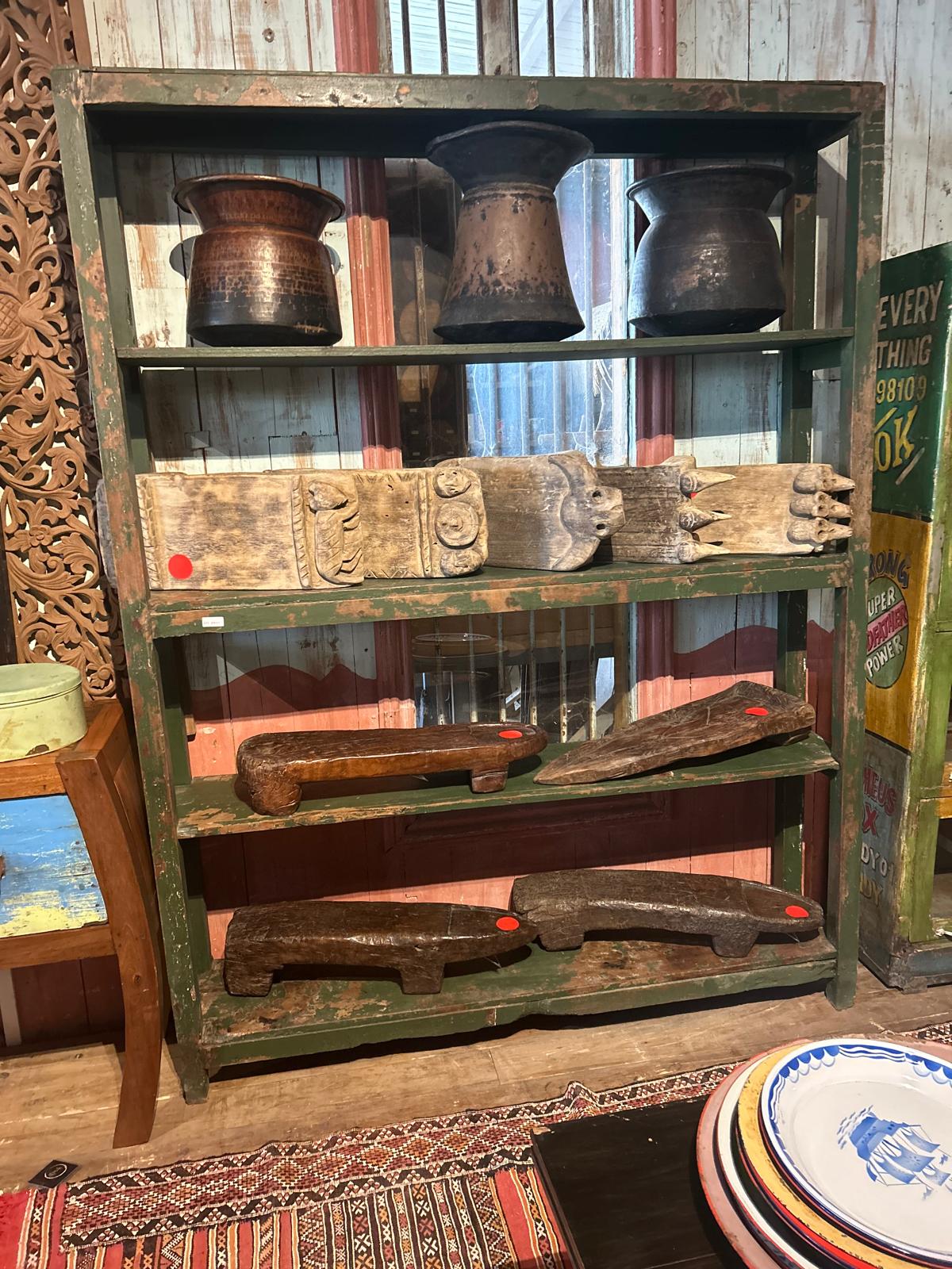 Etagères verte à trois étages en teck de couleur verte