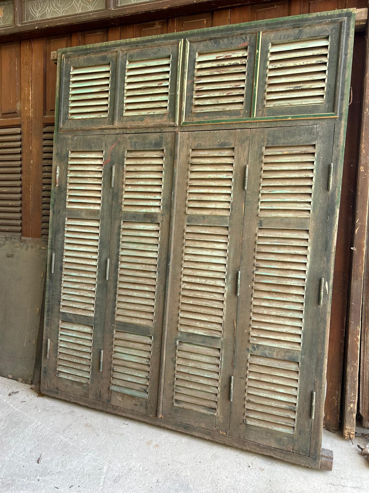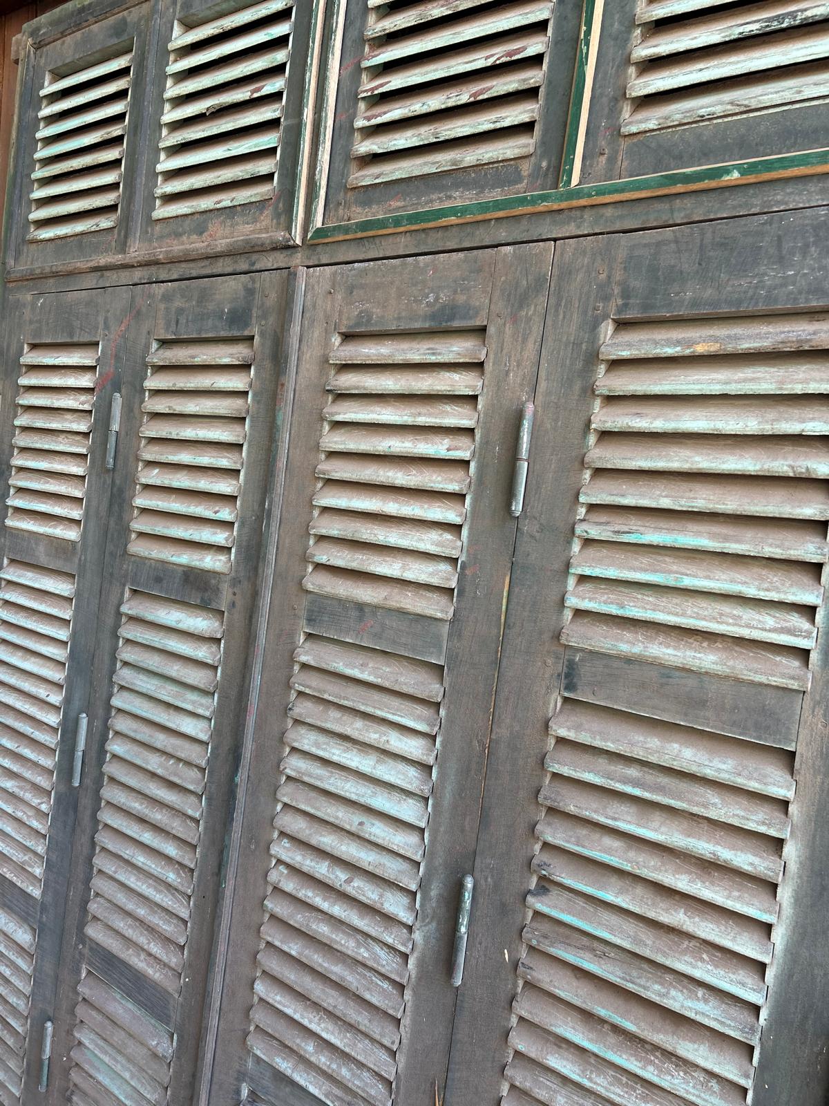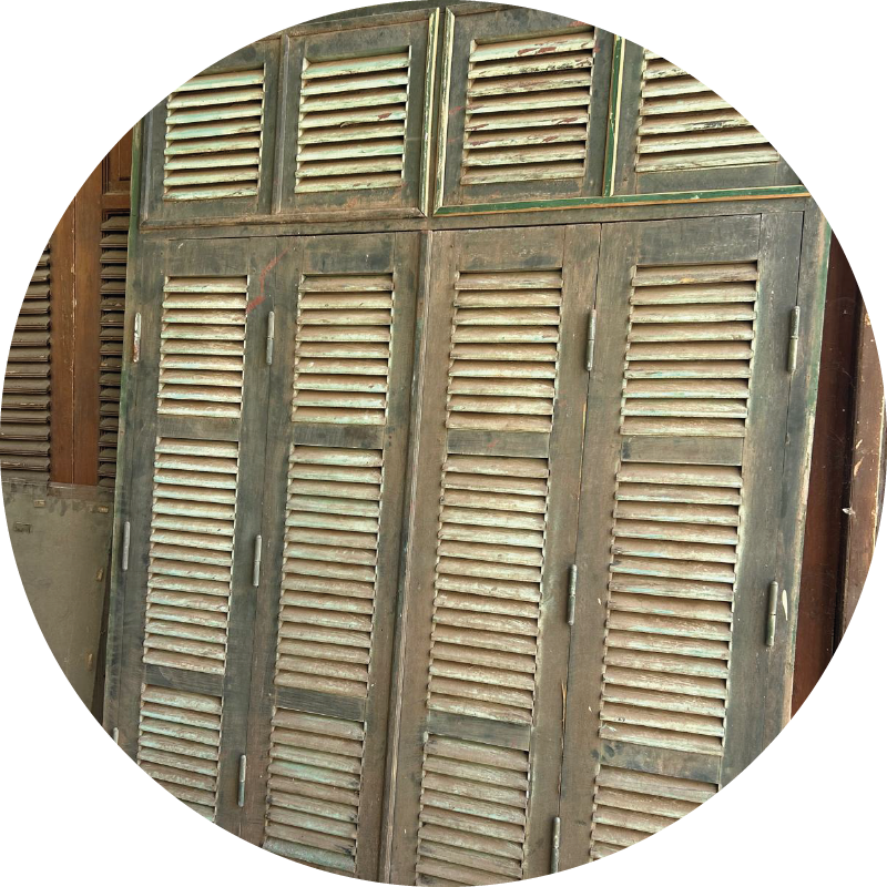 Façade avec porte double et fenestrons en teck provenant du Vietnam