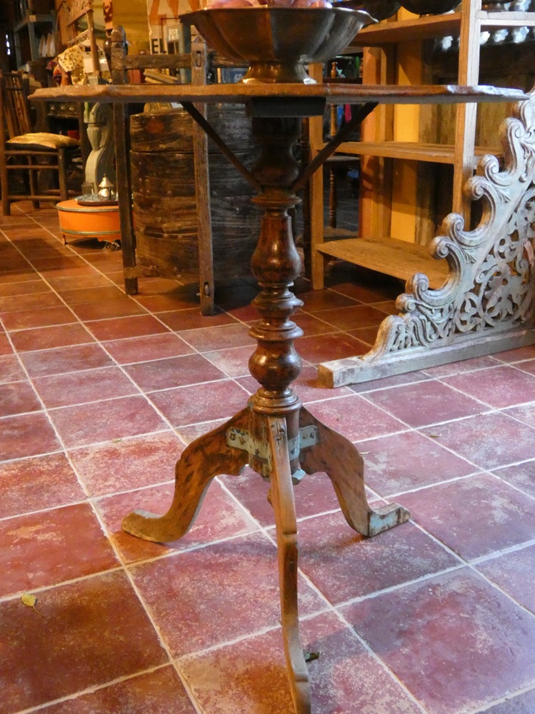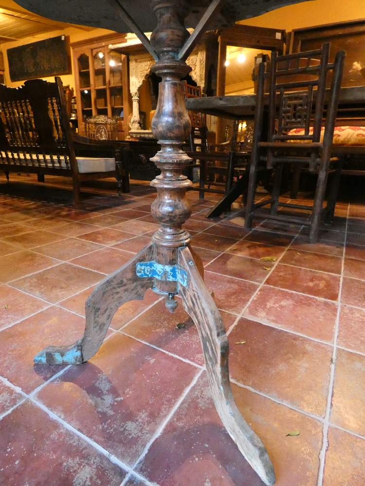 Guéridon indonésien en teck avec pied sculpté, ancien.