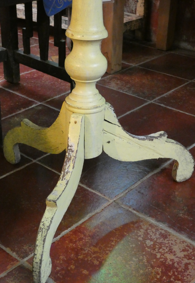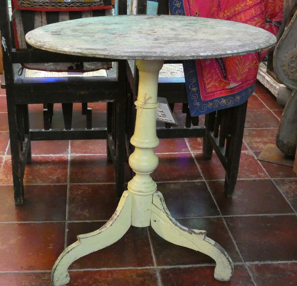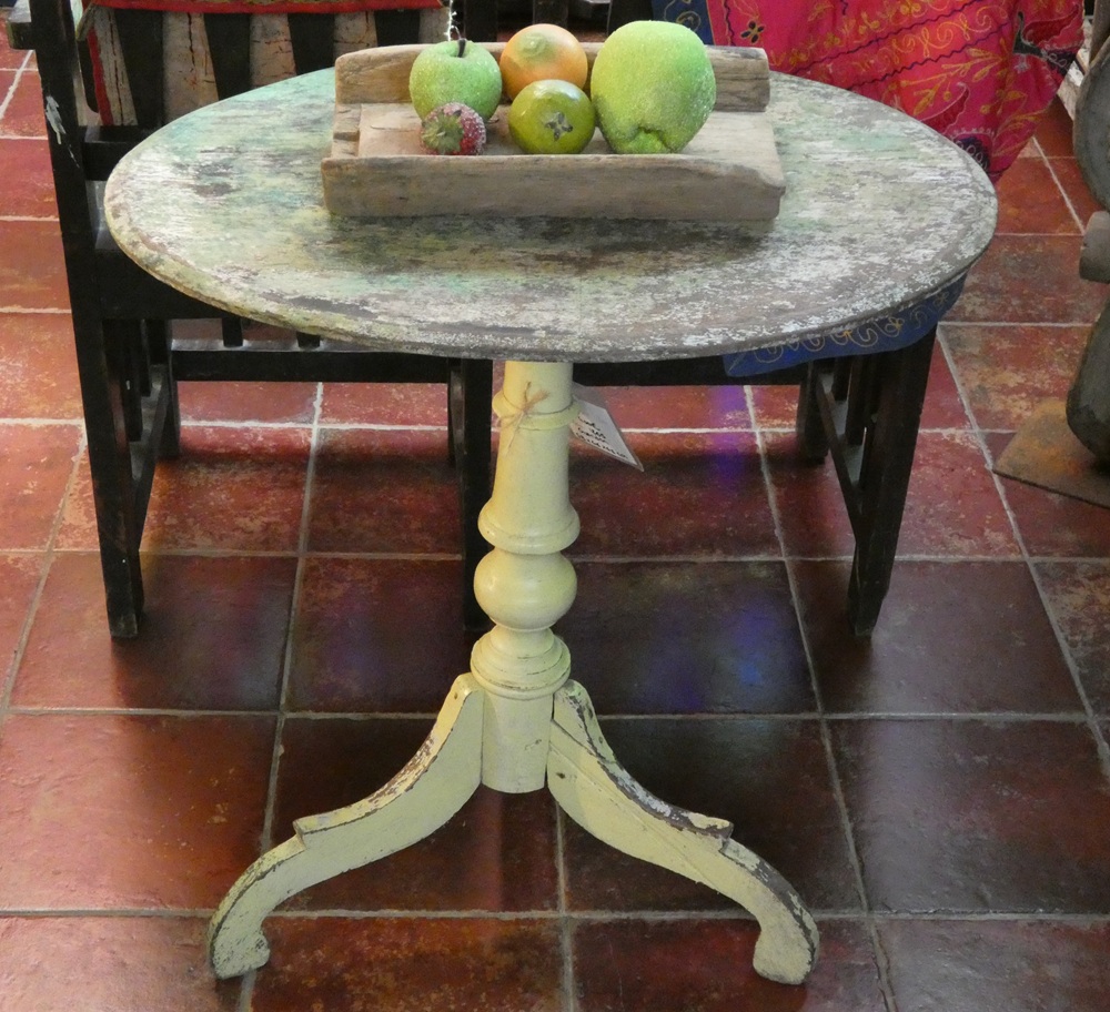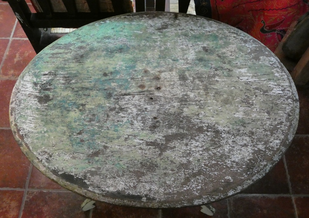 Guéridon en teck, ancien, patine verte d’origine, Java, Indonésie.