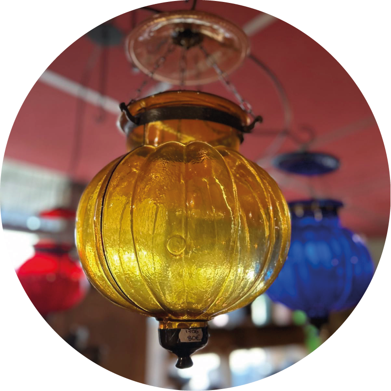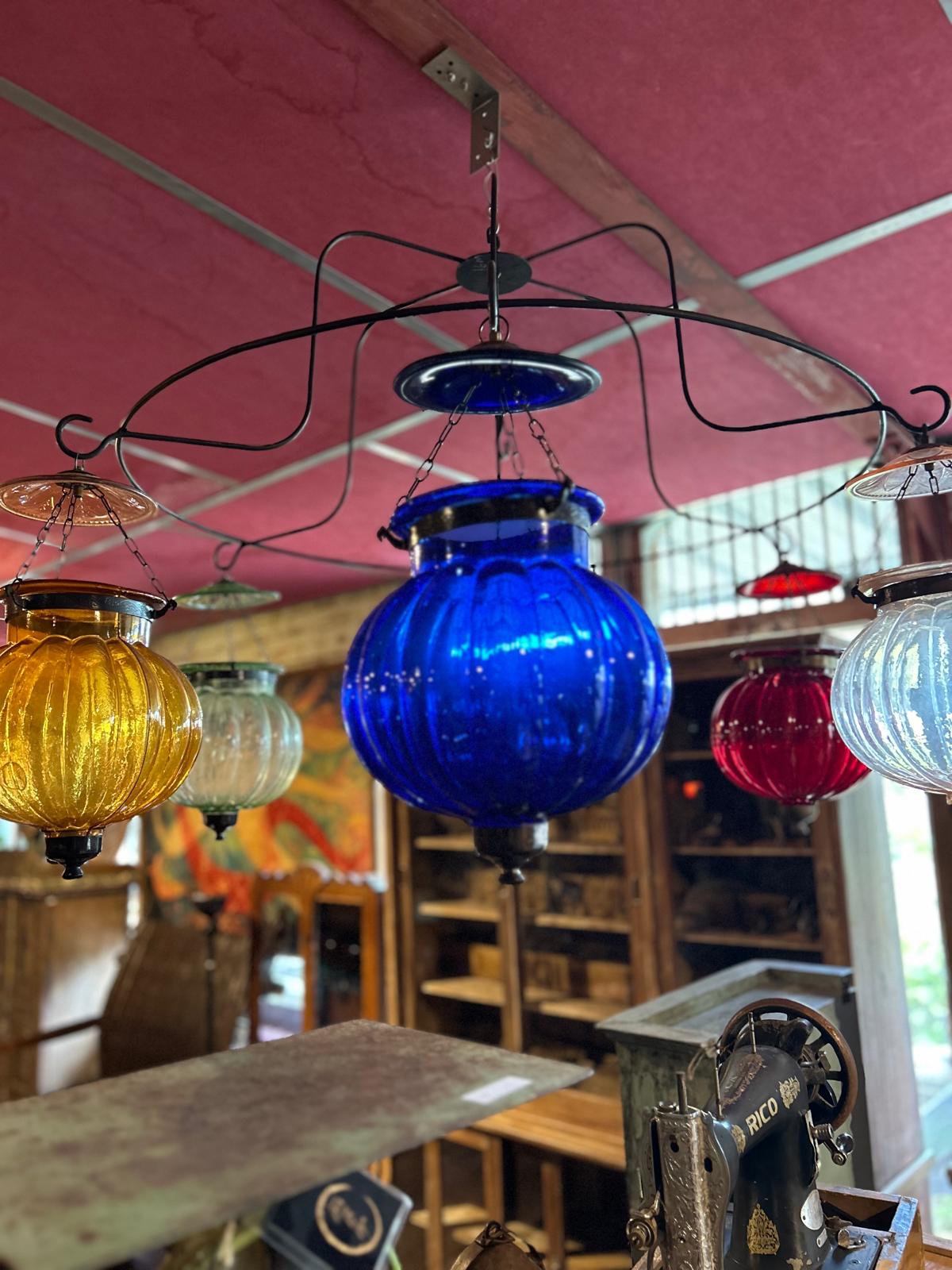 Lampe plafonnier citrouille en verre de couleur orangeExiste également en bleue, rouge, rose, verte et transparente