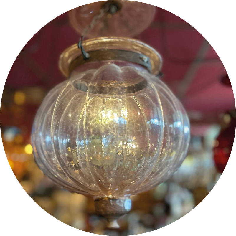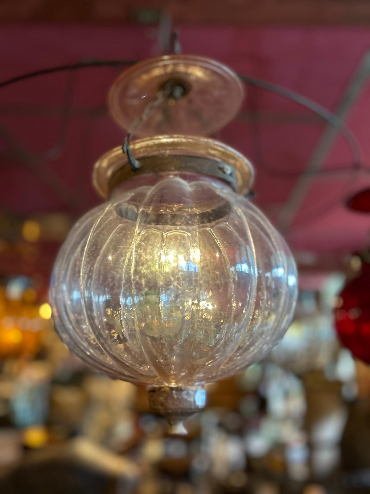 Lampe plafonnier citrouille en verre de couleur roseExiste également en bleue, transparente, rouge, verte et orange