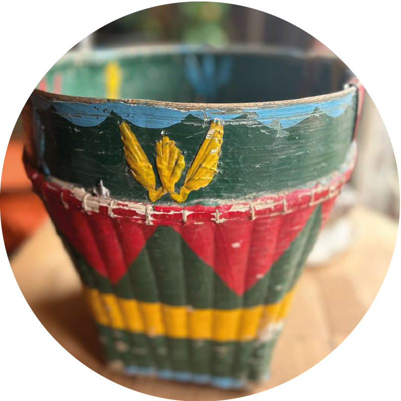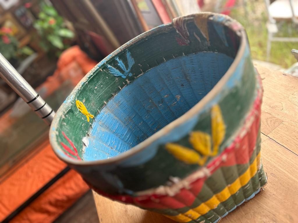 Panier coloré en rotin d’Indonésie. (Vert, rouge, jaune, bleu) Egalement coloré à l’intérieur.