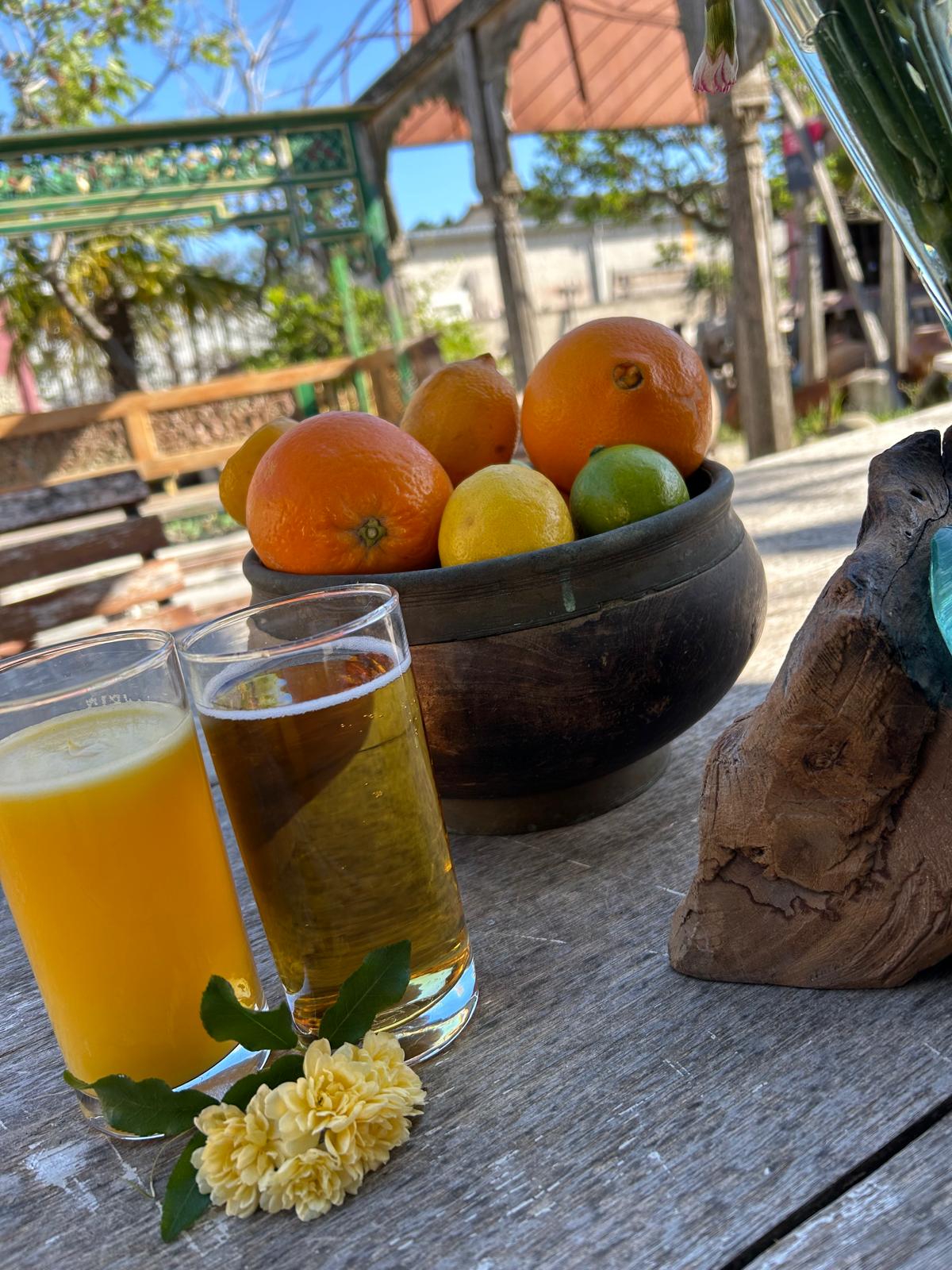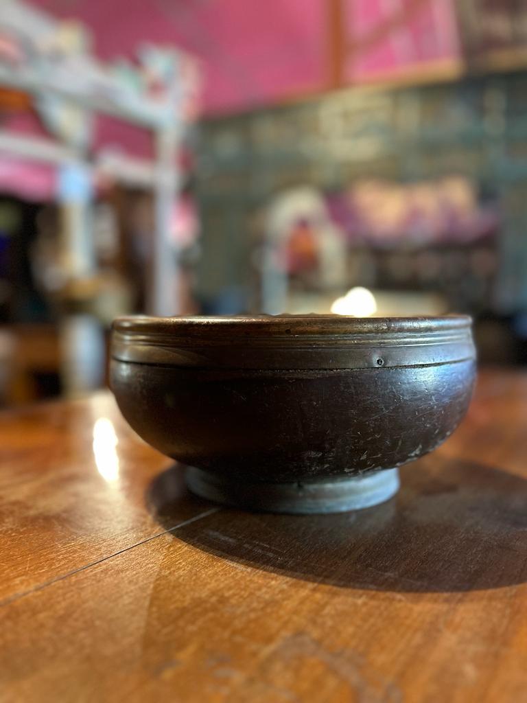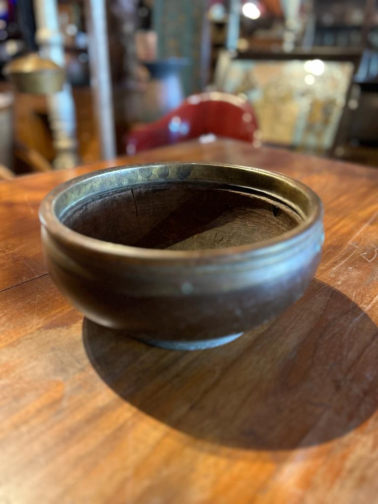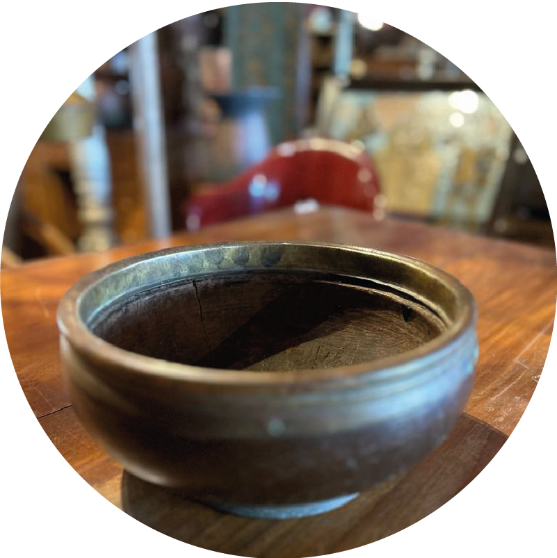 Plat en teck javanais cerclé en cuivre