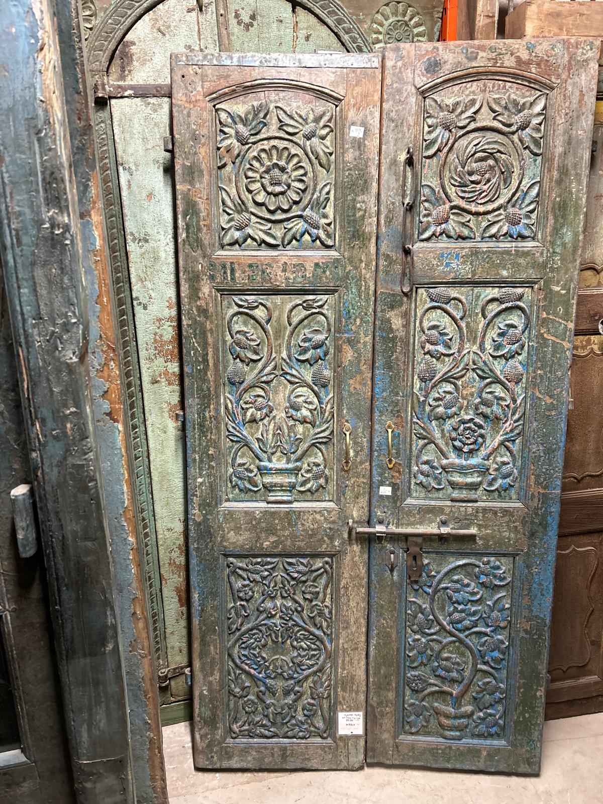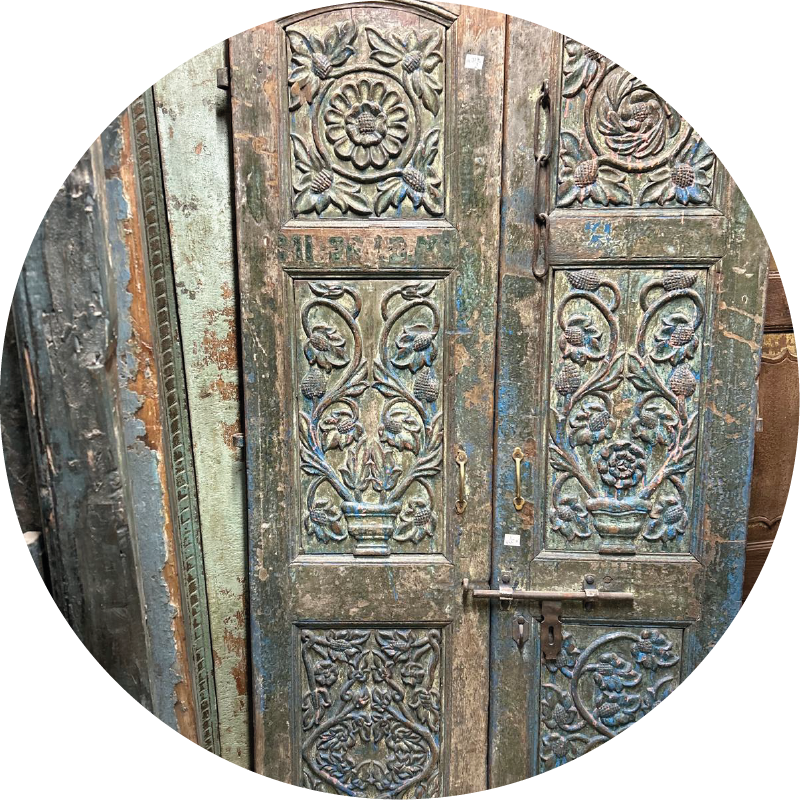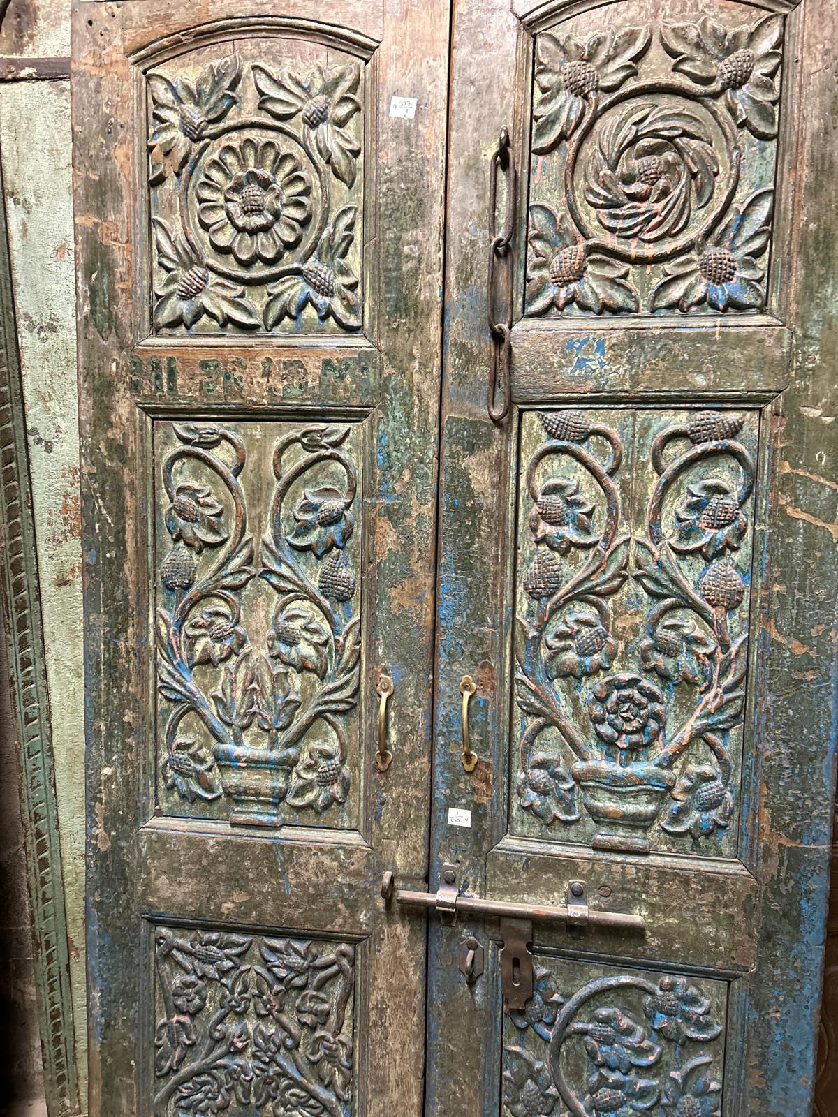 Porte double bleue en teck du Rajasthan