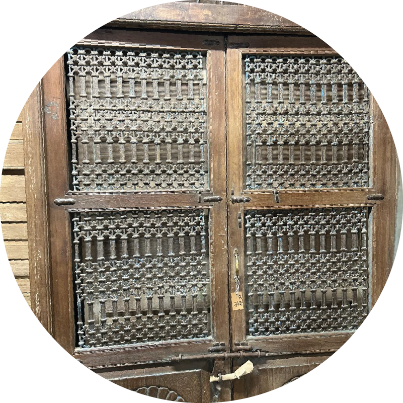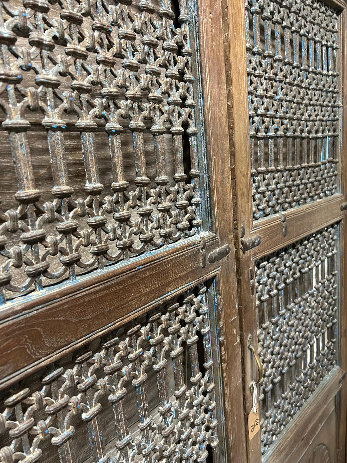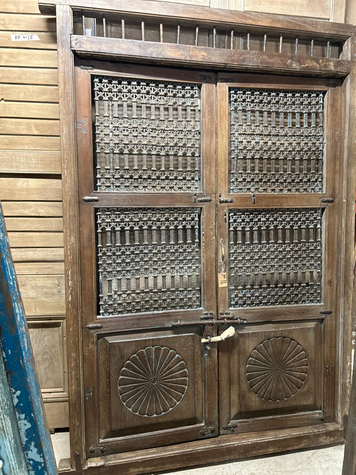 Porte double marron moucharabieh en teck du RajasthanDimensions: Extérieur: 133cm x 8cm x 197cm Intérieur: 121cm x 167cm