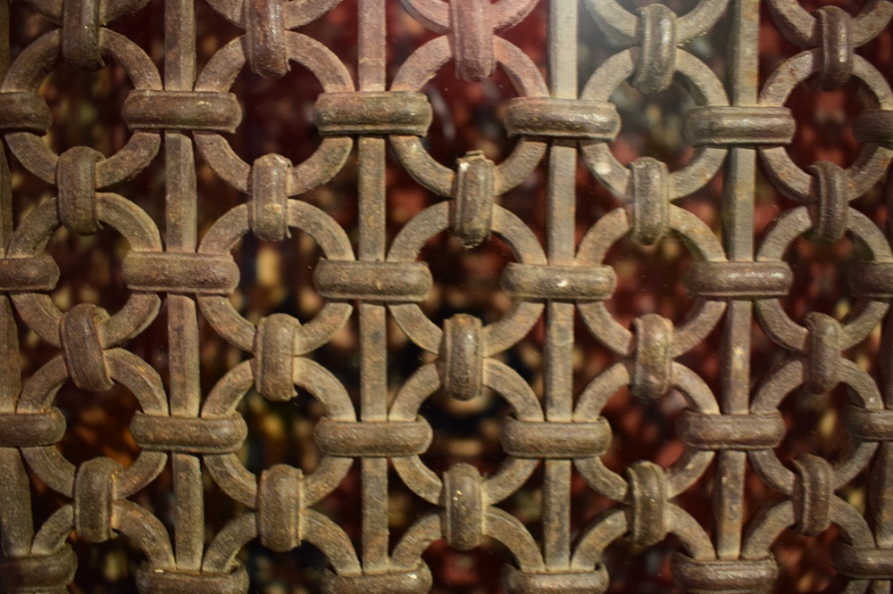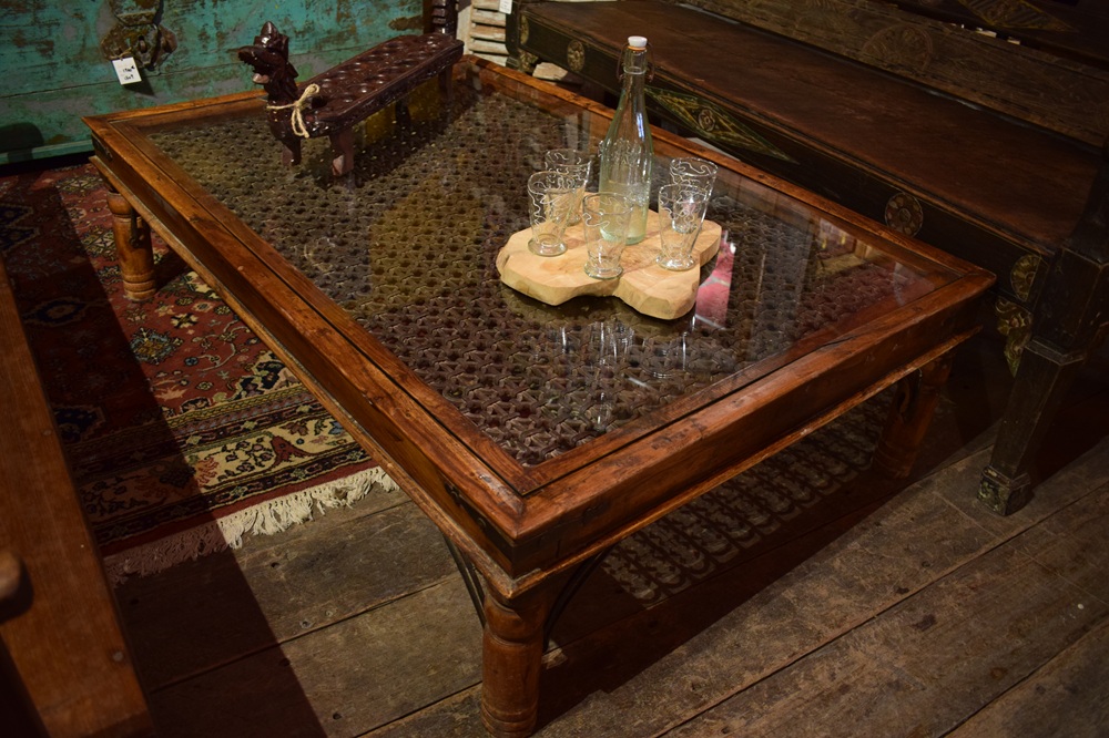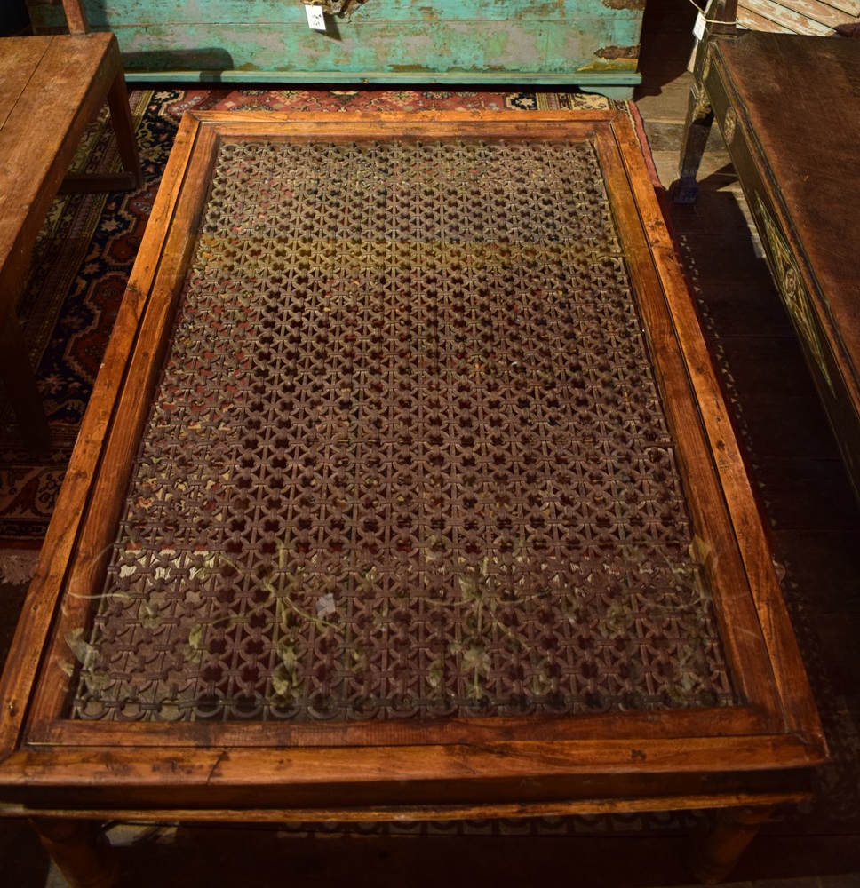 Table basse réalisée avec une grille en fer ancienne, Inde.