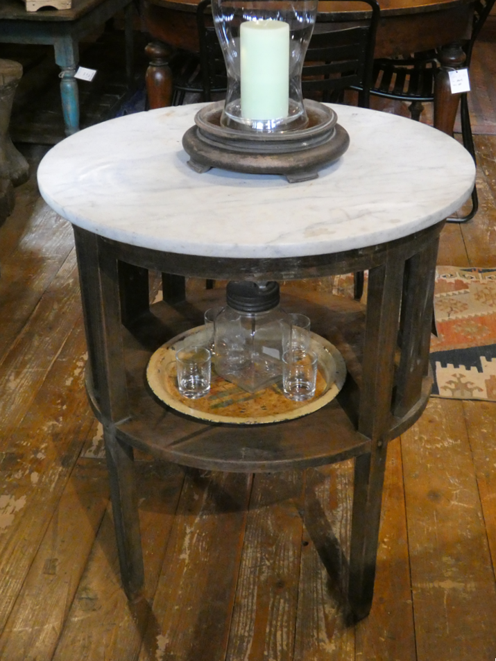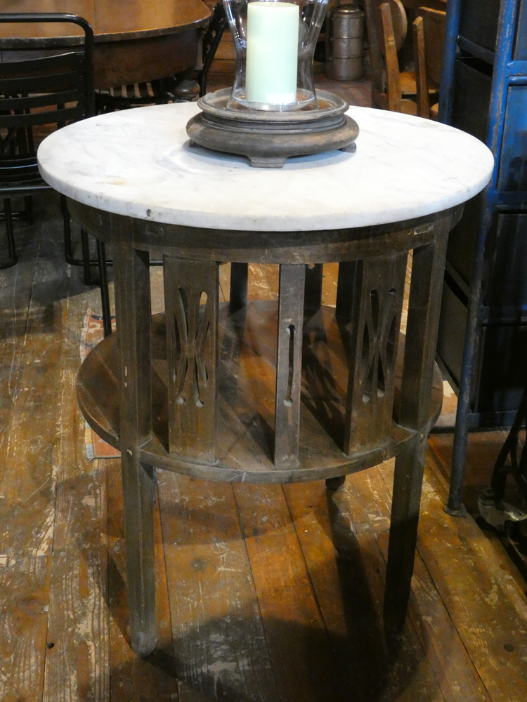 Table d’appoint Art-Déco en teck et plateau marbre, Java, Indonésie.