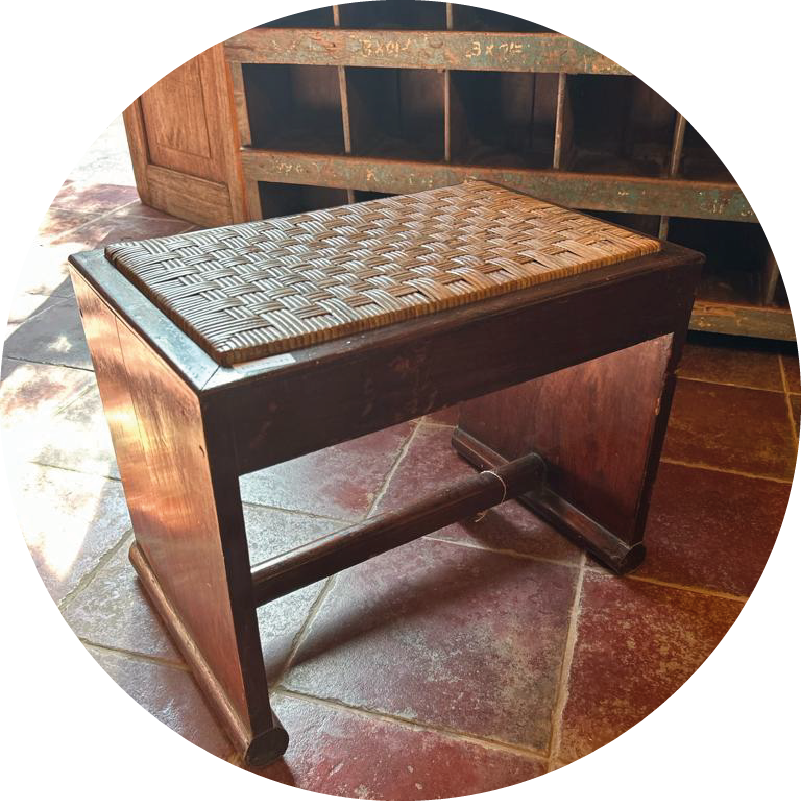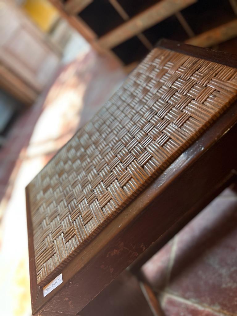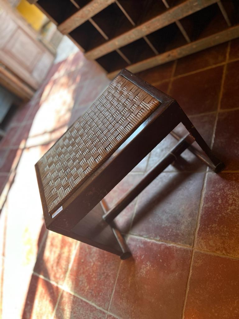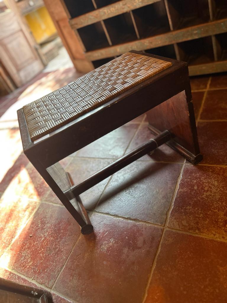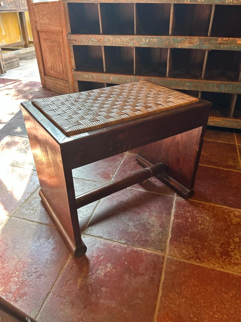 Banc en teck et cannage Dimensions: Longueur: 45cmLargeur: 30cm Hauteur: 35cm