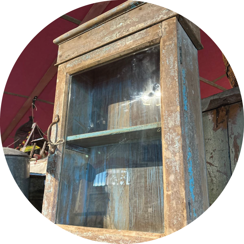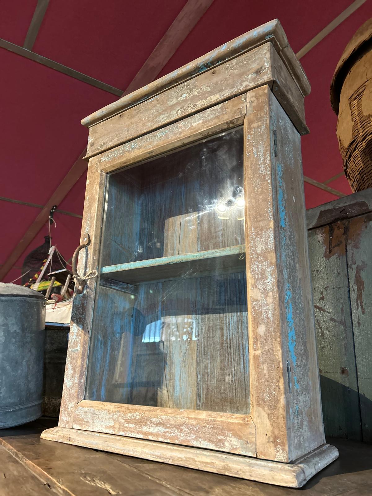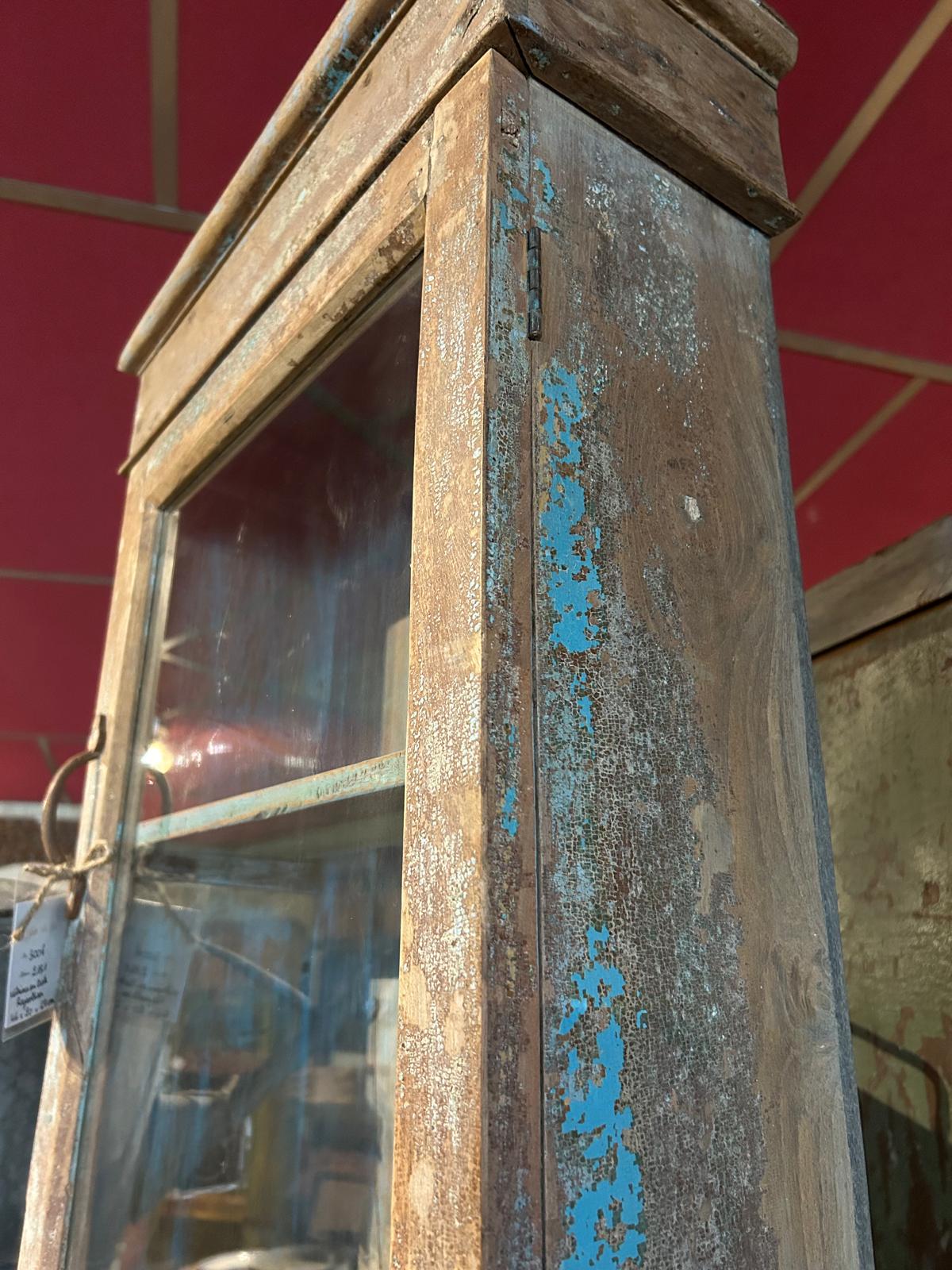 Petite vitrine avec patine marron et bleue du Rajasthan